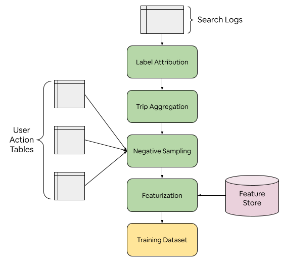 Diving deeper, we first grouped all historical queries of users who made bookings, using key query parameters such as location, number of guests, and length of stay — our definition of a “trip.” For each trip, we analyzed all searches performed by the user, with the final booked listing as the positive label. To construct (positive, negative) pairs, we paired this booked listing with other homes the user had seen but not booked. Negative labels were selected from homes the user encountered in search results, along with those they had interacted with more intentfully — such as by wishlisting — but ultimately did not book. This choice of negative labels was key: Randomly sampling homes made the problem too easy and resulted in poor model performance.
