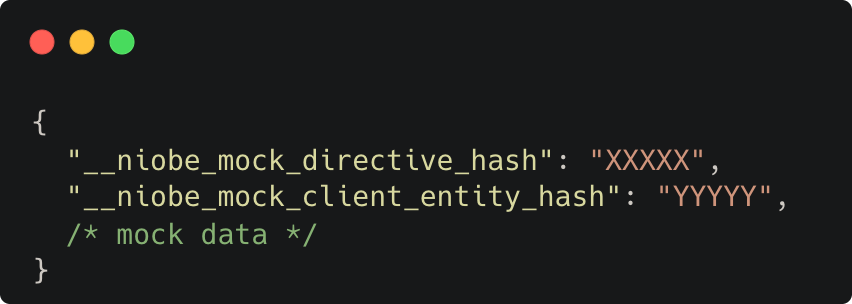 The final challenge we addressed was the issue of keeping mocks in sync with queries as they evolve over time. Since Niobe manages mock data that is generated via the @generateMock directive, it can be smart about maintaining that mock data. As part of mock generation, Niobe embeds two extra keys in each generated JSON file: